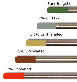 As a general rule of thumb, for welding steel on AC or DC, use 2% thoriated tungsten electrodes (larger is better). For welding stainless or aluminum on AC or DC, try a pure tungsten electrode (tungsten with no other elements added), around 1/16 inch in diameter. If the application requires microwire TIG (copper-in-quartz) electrodes with the low current flow (less than 40 amps), these can be as small as .02 inches in diameter.